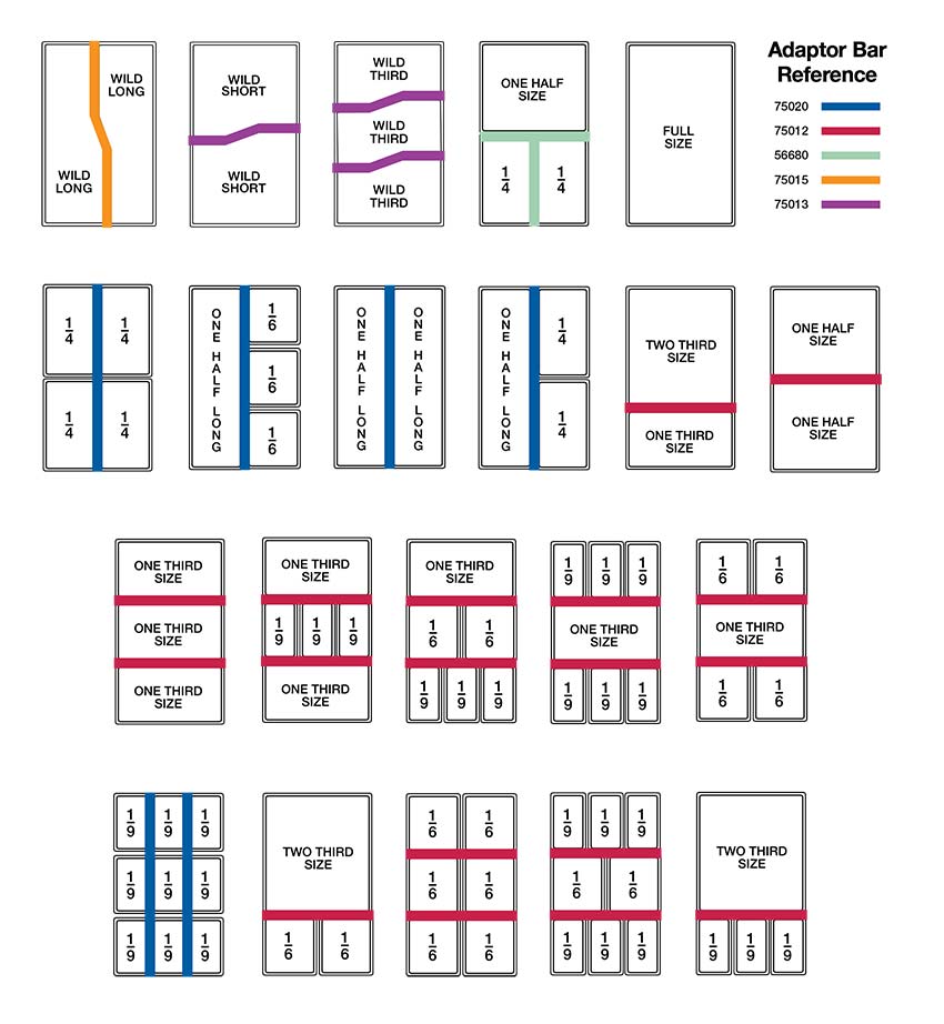Here is a variety of layout options for your 12" x 20" (30.5 x 50.8 cm) opening using Super Pan® V and Super Pan® Super Shapes steam table pans.