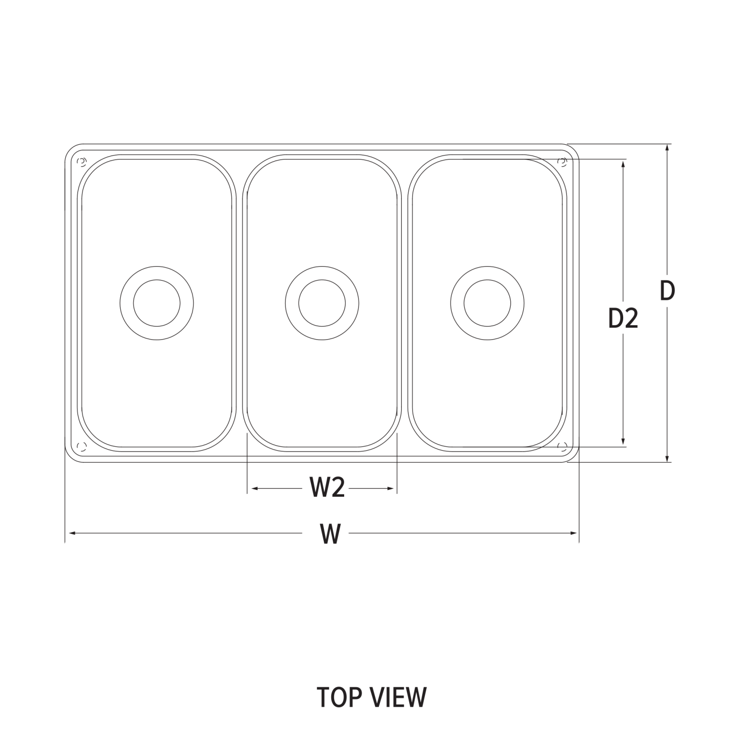 Three-bowl stainless steel self-rimming vending cart drop-in sink